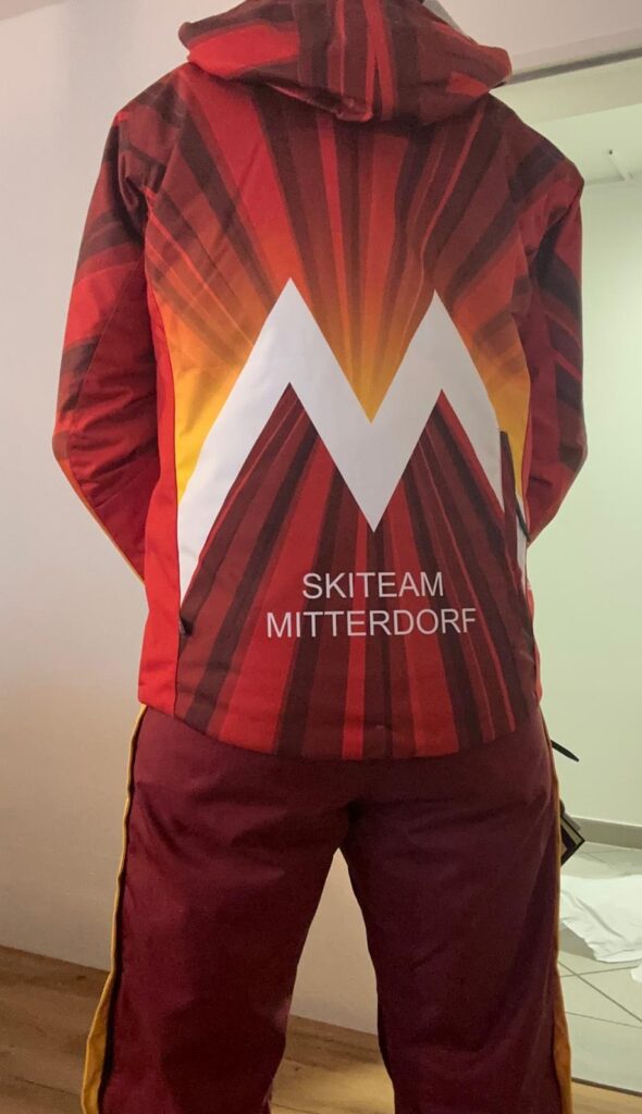 Die neuen Skianzüge wurden nach unseren Wünschen von der Firma Vitalini gefertigt und mit dem Mitterdorfer Logo versehen. Ziel des auffälligen Designs war es, eine optimale Sichtbarkeit und Wiedererkennung zu erreichen. Bereits im ersten Einsatz der neuen Kleidung konnten wir sehr viel Aufmerksamkeit von anderen Vereinen erhalten.